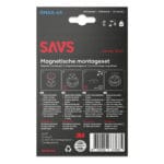 De SAVS® RMAX-60 heeft 3 magneten. Met deze magneet set hang je de melder binnen een paar seconden zeer stevig tegen je plafond of muur, zonder gaten te boren. Unieke opstaande rand Met de opstaande rand is deze magneet als enige zeer geschikt voor zowel horizontale als verticale bevestiging (muur of plafond). De RMAX-60 heeft nog een extra gat om de magneet nog met een schroef vast te zetten, dit kun je gebruiken bij grovere plafonds/muren om zo toch een magneet te kunnen gebruiken.